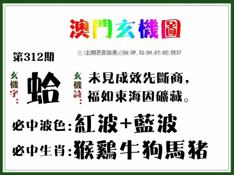 311期天【牛马兔猪】地【狗虎羊】开:蛇37准
